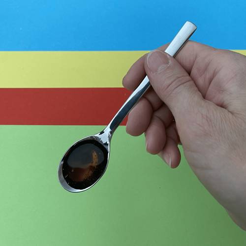 Tartalom és összetevők:isztított víz, térfogatnövelő szer: szorbitszirup, nedvesítőszer: glicerin, kukorica maltodextrin, aromák, C-vitamin (L-aszkorbinsav), vas-biszglicinát, koncentrált száraz kamillakivonat (Matricaria kamilla , virág), B12-vitamin (cianokobalamin), folsav (pteroil-monoglutaminsav). Tartósítószerek: kálium-szorbát, nátrium-benzoát. Sűrítőanyag: xantángumi. Savszabályozó: citromsav. Színezék: egyszerű karamell színezék.